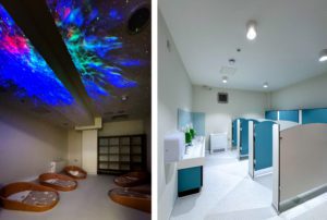 New partition walls have been constructed, complete with skirting and architraves, to accommodate dedicated age-specific rooms and service areas. The facility included two vibrant kitchens and several service areas featuring sleek Magnet units, tiling, stainless steel and acrylic worktops and splashbacks, and bespoke appliances. Additionally, there were laundry facilities, three changing rooms, and cosy kids’ washrooms with custom-designed cubicles, as well as practical toilets and a shower for staff.
